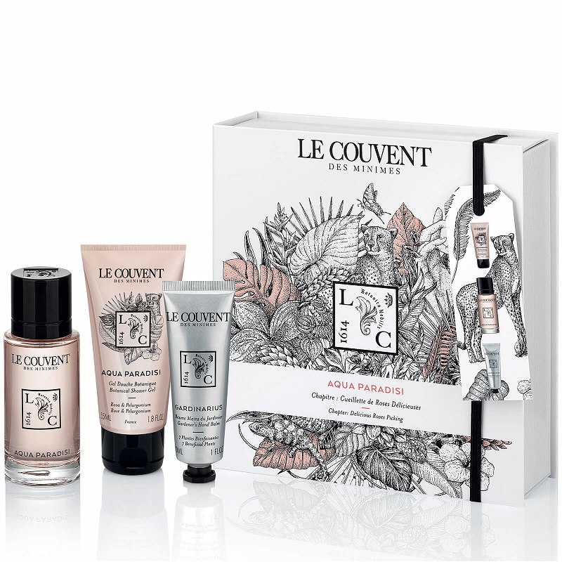 | 天賜之水香潤禮盒 特惠價$3,380 (天賜之水100ml+花匠園藝護手霜75ml+遠旅者護腳霜75ml) 仙境之水玫瑰與埃及天竺葵叢林禮盒 特惠價$2,500 (淡香水100ml+香浴凝露55ml+香體乳50ml) 花園系列香皂禮盒 特惠價$1,500 (米尼姆之水+陽光之水+仙境之水香皂150g) |