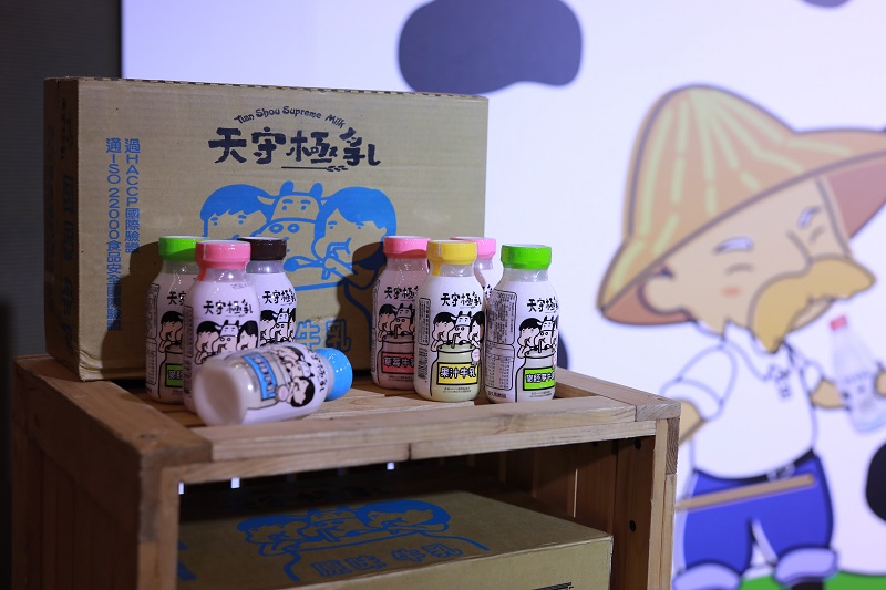 天守實業向大家介紹未來將推出的新品:「天守極乳」系列。透過長期調查與評估後,天守實業因應新一代小朋友的喜好與習慣,歸納出了包含原味、巧克力、果汁、麥胚芽、草莓等共五種口味牛乳。天守實業長官也表示將順應現今講求健康的時代,規劃推出「減糖」的款式,讓大人小孩都能喝得更健康!