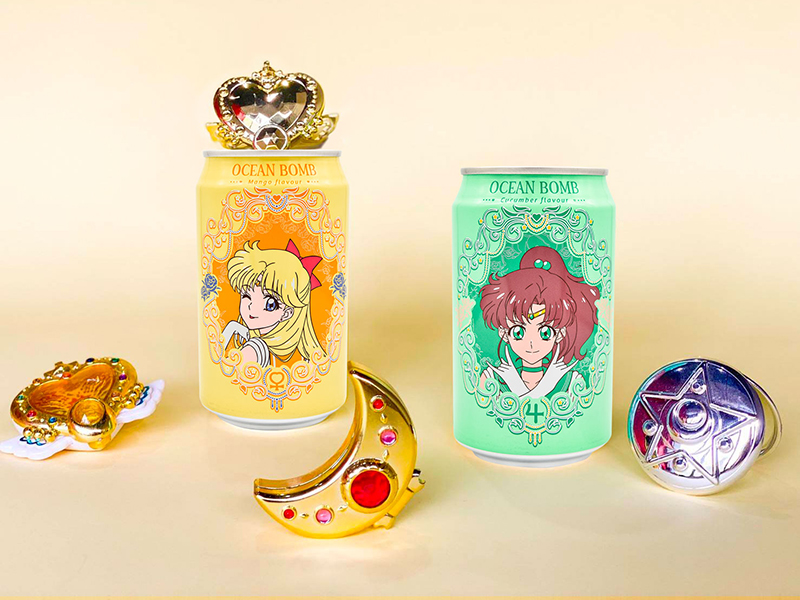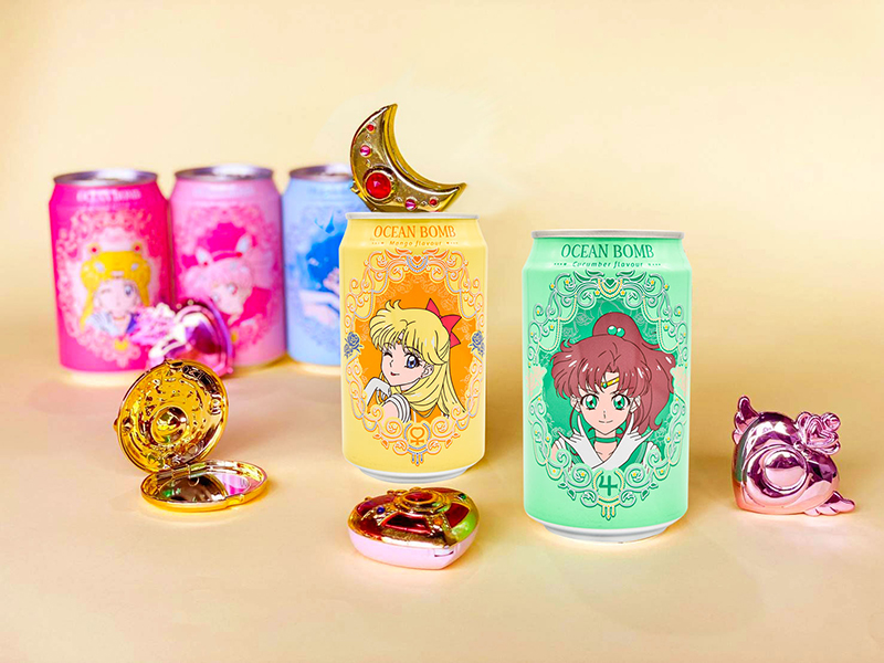 直到今日,每當「美少女戰士」推出聯名款商品,仍能成功掀起市場討論熱潮,顯示出美戰難以取代的獨特魅力。而總能在瓶身包裝創造驚喜的「Ocean Bomb」,過去就推出4款獲得官方授權的美少女戰士系列氣泡水,分別為水手月亮(黃金柚風味)、水手小月亮(荔枝風味)、水手火星(草莓風味)、水手水星(水梨風味),每一款背面均有專屬的變身器圖樣,已然成為氣泡水市場中最粉嫩動人的明星產品。