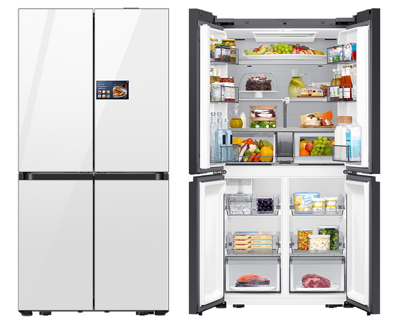 劃時代的AI Hybrid 四門旗艦冰箱以創新功能滿足現代家庭需求,搭載9吋AI Home全彩觸控螢幕,圖像式的直覺設計,提供用戶「食材管理、居家控制、家庭互動、娛樂體驗」等客製化服務;另可透過SmartThings應用程式無縫串聯智慧家庭生態圈,隨時掌握家中聯網裝置及設備。當用戶早晨走進廚房倒水,即可透過冰箱螢幕輕鬆掌握天氣狀況、查看當日行程;抑或是在料理時,能借助Bixby語音助理,直接播放音樂、搜尋影片食譜;此外,藉由三星Smart View,能將智慧型手機或智慧顯示器畫面無縫鏡射至冰箱螢幕,透過專屬相簿功能展示家人照片,為廚房空間增添個人化氛圍。