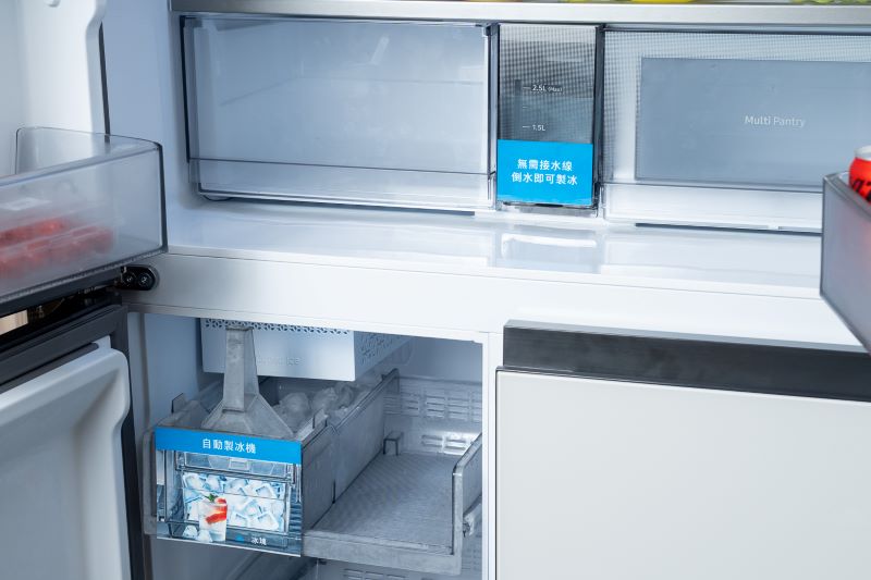 ↑內建自動製冰機,不需水線安裝,只需將過濾或煮沸的水注入水箱。