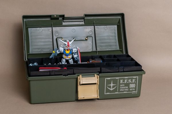 組裝工具也要有個家!軍綠色的「鋼彈收納工具箱,經典又不失帥氣的設計,上面還有地球聯邦的圖騰,聯邦陣營的粉絲快入手!帥氣度爆棚的軍風彈藥收納箱」,除了可作為家中陳列佈置外,還可收納鋼彈寶貝們,雙重用途的實用好物,軍事控鐵粉必收!