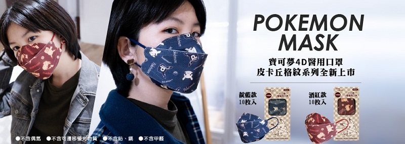 【寶可夢4D醫用口罩(靛藍款/酒紅款)】