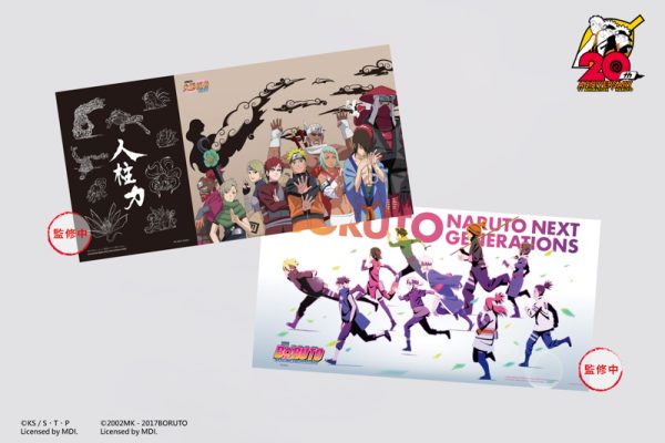 新光三越Online預售組內有兩張展覽票券、兩個Q版第七班造型「吸水拼圖杯墊」,一個印有超殺人柱力或《慕留人 -火影新世代-》的「電競桌墊」每天在電腦旁邊陪你,還有一支印有曉雲紋或火影帽子圖案的「折疊傘」讓你下雨也不怕。