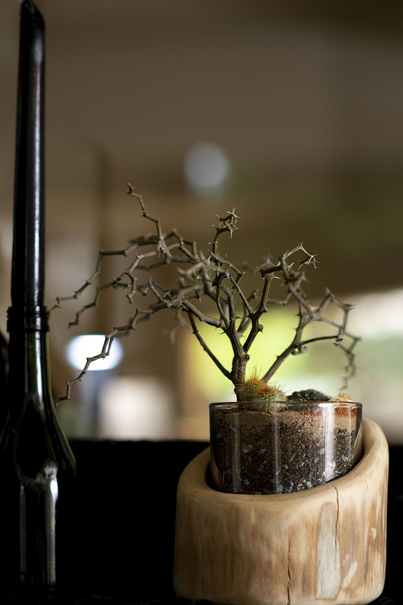 這株外貌如枯枝的多肉植物,他特殊的生長樣貌,彷彿來到一座暗黑森林,在入口處向你招手的迎賓樹,隨風擺動時更增添神秘氣息。揀選原木材質製作的盆器,延伸穩重感。原生地為馬達加斯加的彎彎曲曲,與台灣的氣候相仿,相當好照顧。