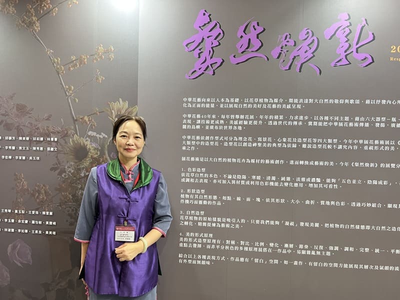 展區空間眾多精緻作品令人目不暇給。《緣來都是一家人》巧妙融合原住民竹編與織布工藝,搭配花藝五大正色,化族群共融力量為繁花盛景。點題之作《粲然煥新》以竹片進行水平螺旋編織,展現出高昂靈動氣勢。知名的中華花藝 李雅惠老師亦參與此次美學盛會,與眾多優秀花藝家共同傳遞深邃哲思。《煙火錦官城詩路萬里行》汲取客家祭典傳統,以光影營造唯美暮色;《水鏡山屏》以山水為靈感演繹陰陽虛實。教學觀摩區則展示六大器型的基本插作與花型應用,循序漸進引領大眾領略花藝底蘊。誠摯邀請民眾前往松山文創園區觀展,細細品味美好生活。