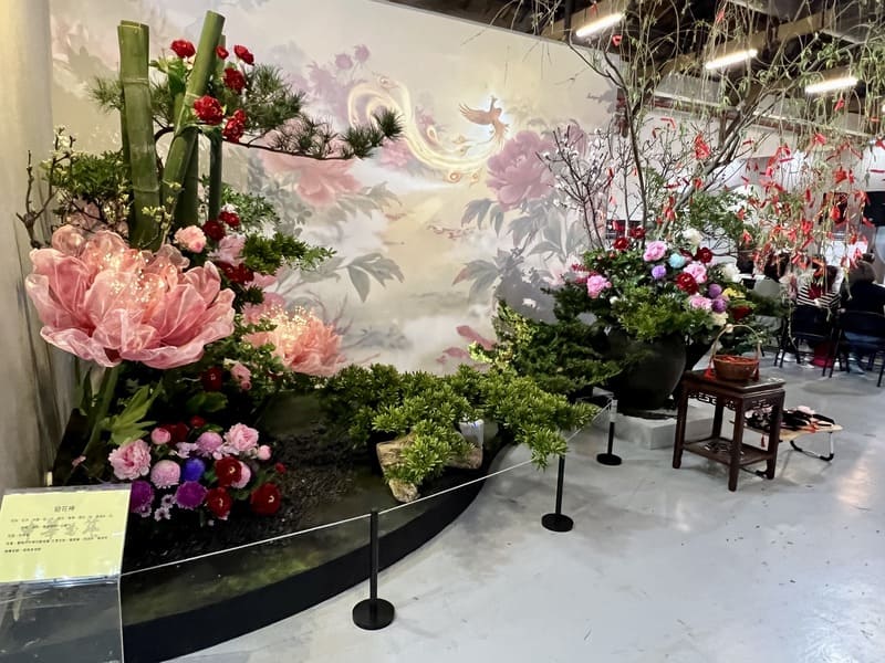 本屆展覽最引人矚目的焦點之一,便是結合當代創新科技的瑰麗主視覺。適逢春暖花開的季節,主辦單位特別選用象徵富貴繁華的四月之花「牡丹」作為核心意象。為了完美呈現其雍容華貴,並兼顧展期十天的視覺品質與環保永續,主視覺採用精緻的「仿真牡丹」藝術媒材進行創作,打造出栩栩如生的立體空間。更令人驚豔的是,此次首度跨界結合AI燈光科技,以光影流動創新演繹「鳳凰于飛」的吉祥意境。當絢麗的AI燈光投射於擬真牡丹裝置上,彷彿可見神鳥鳳凰於花間靈動穿梭,不僅展現傳統文化對祥瑞的期盼,更將中華花藝推向數位藝術的新境界。傳統底蘊與現代科技完美交融,締造出令人讚嘆的視覺張力,為觀展民眾帶來前所未有的沉浸式美學體驗。