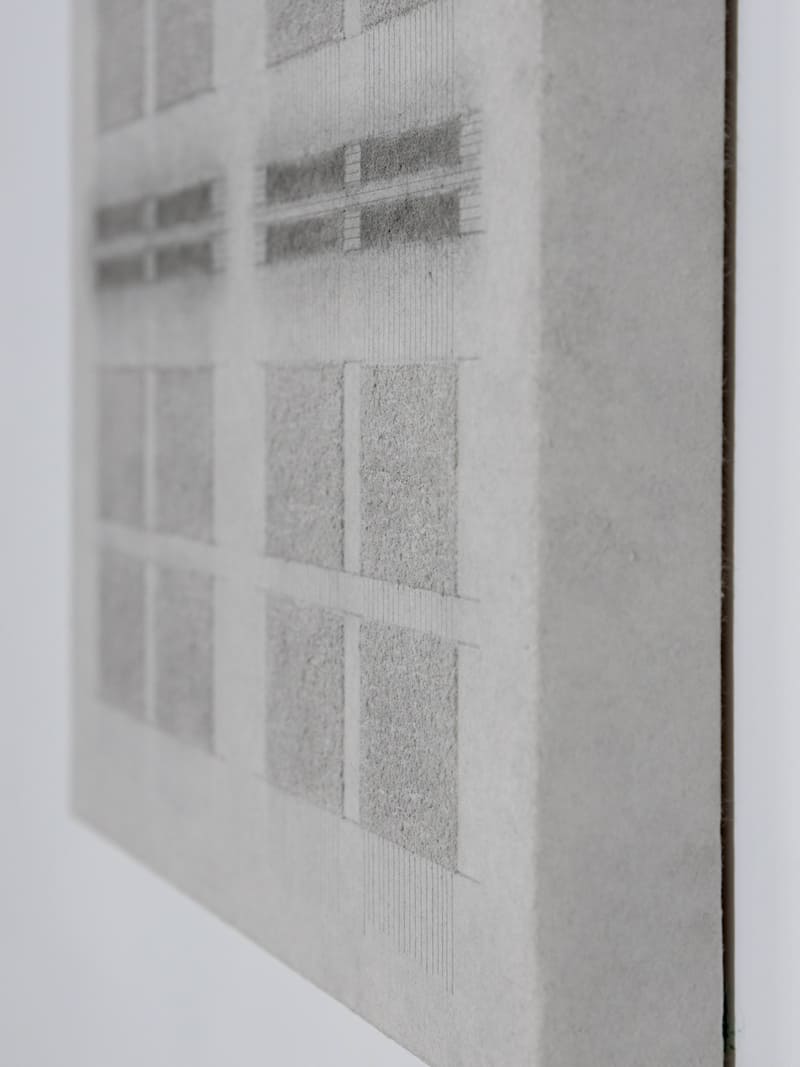 她的作品如《刺紙2024-1》,將刺紙融入理性網格,呈現冷靜有序的結構;《刺紙2024-6》則展現隨意、自然的刺痕與微妙的秩序感;《刺紙2024-7》加上色粉,讓作品呈現細緻的色彩層次。她甚至自製紙張,嘗試讓作品從平面走向立體,持續拓展刺紙的可能性。