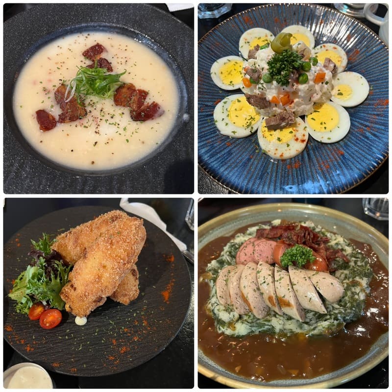 開場暖胃的「經典荷式芥末奶油湯」,以荷蘭芥末與奶油為基底,融合香料與雞高湯,香氣濃郁、口感溫潤。接著登場的「荷蘭式涼拌馬鈴薯」結合酸黃瓜、青豆仁、紅蘿蔔、雞蛋與荷式美乃滋,清爽開胃,是歐陸家庭常見的料理。