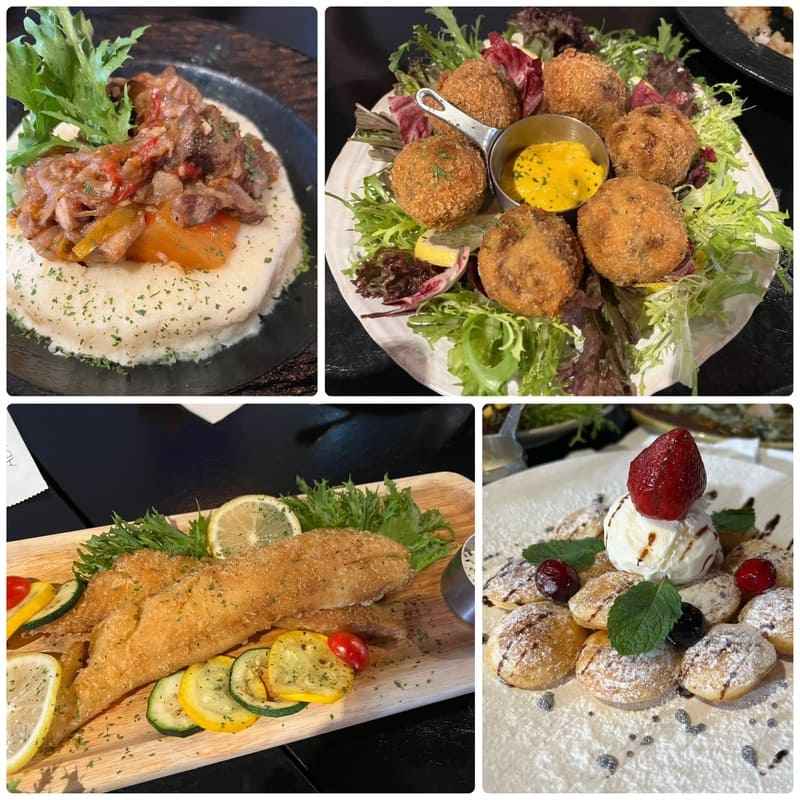 主餐部分,「荷蘭洋蔥燉牛肉佐薯泥」以紅酒與香料慢燉入味,肉質滑嫩、醬汁濃厚;「香煎比目魚佐香草醬」則演繹荷蘭沿岸的漁港風味,外皮金黃、肉質細緻,呈現純粹的海味。