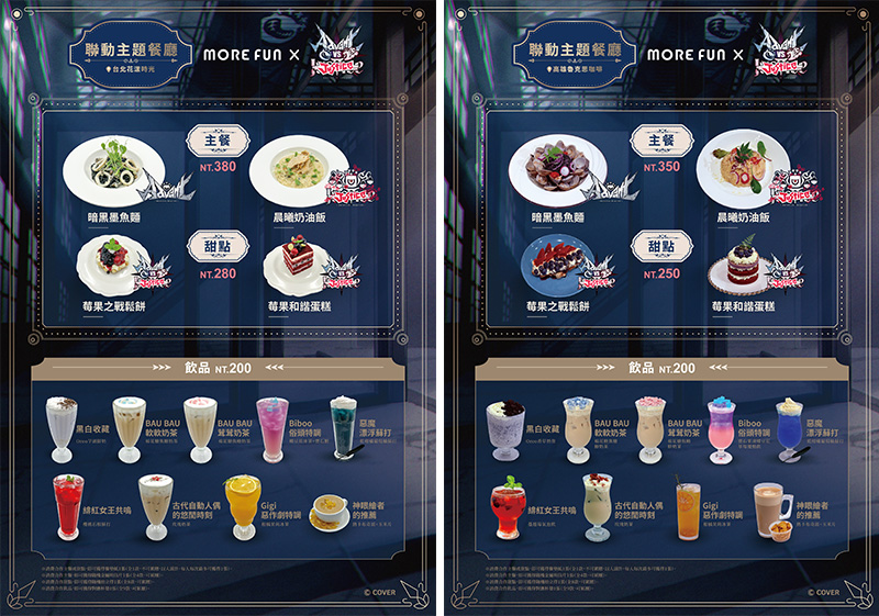 本次聯動以「hololive English -Advent-」與「hololive English -Justice-」間的精采對決故事為主題,透過代表敵對的黑白兩款主餐,以及象徵化敵為友的兩款甜點,讓粉絲在品嚐餐點的同時,也能體驗成員之間的羈絆。