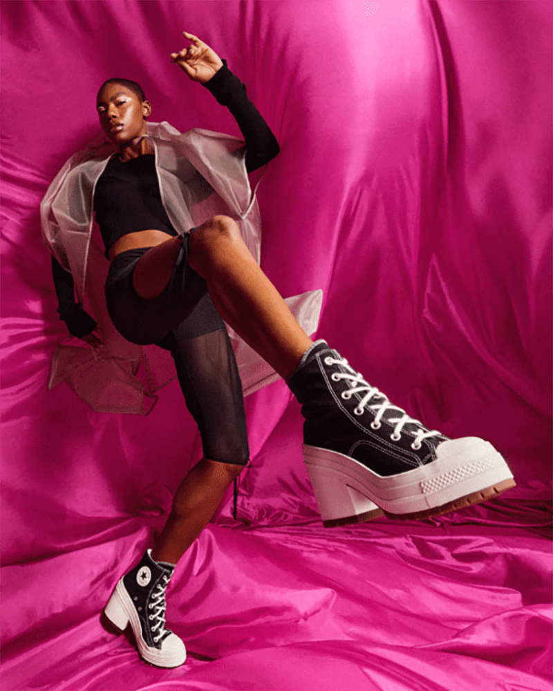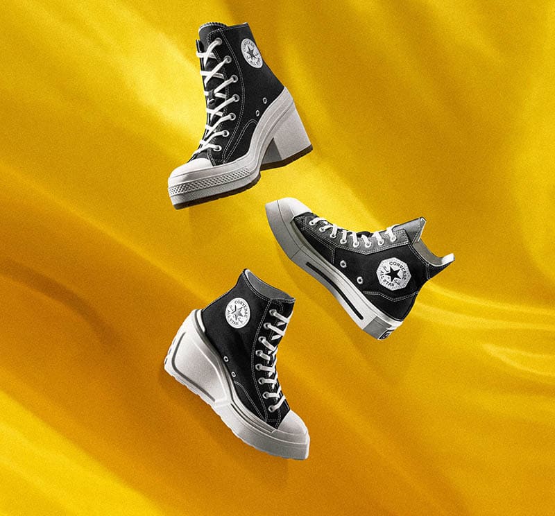 DE LUXE HEEL復古粗跟鞋則將經典Chuck Taylor設計元素與個性鮮明的復古粗高跟相融合,使經典鞋型煥發全新華麗面貌,為搭配提供全新的時尚思路。 穩固的粗跟和鞋底,搭配經典Chuck 70的鞋面,造型高調獨特,令人眼前一亮。
