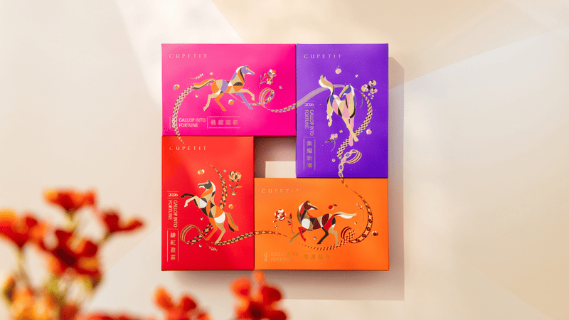隨著 2026 馬年即將到來,法式精品甜點品牌 CUPETIT 卡柏蒂 推出年度新春禮盒《駿馬花禮》,以「駿馬漫馳・繁盛花路」為設計主題,跳脫傳統年節禮盒常見的紅金視覺語彙,推出 緋艷紅、洋氣桃、日昇橘、耀光紫、輝煌金 五款色系,展現兼具節慶氛圍與現代感的設計風格