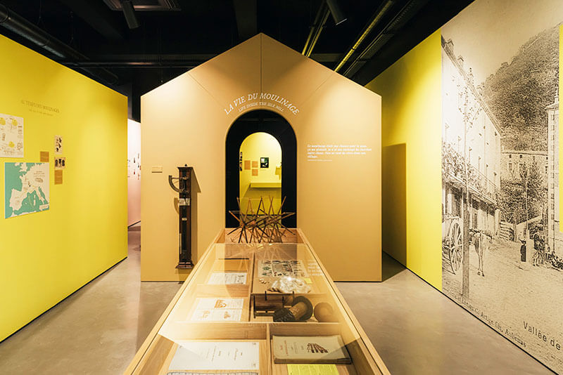 Espace Montagut博物館,選址於Eyrieux山谷舊工業建築,經細膩修復後重獲新生。走進館內,拱形結構與溫潤材質呼應昔日蠶絲工坊意象,彷彿引領訪客展開一場穿越時空的旅程。以「時光旅程」為策展主軸,透過歷史照片、早期編織機械與珍貴檔案,細述品牌自18世紀蠶絲產業發跡,至今日走向國際市場的發展軌跡,呈現家族傳承與工藝創新的深厚底蘊。