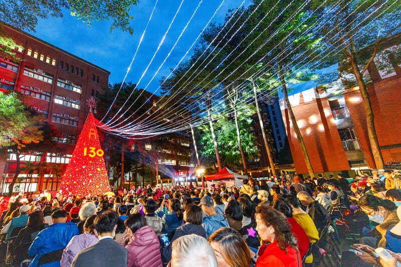 你看過全紅的聖誕樹嗎?國北教大於11月27日舉辦「130向前走」校慶點燈祈福典禮,是國北教大及校友總會、億光文化基金會主辦,結合「雙春金蛇年」意涵,用5000多顆金銀紅聖誕球妝點,在絢麗天幕光影折射的璀璨燈海下展開,吸引上千師生及各界貴賓同來祝賀,成為歲末最夯最飆的浪漫風情!
