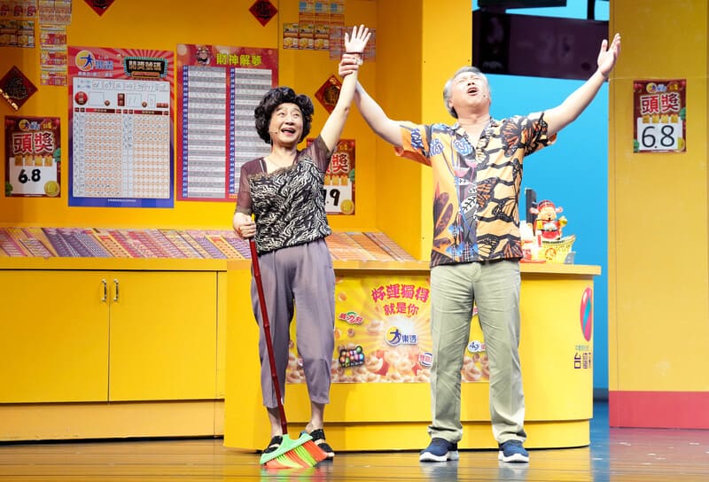 陳希聖與楊麗音在劇中鬥嘴互動,笑果十足( 攝影_張大魯/ 綠光劇團 提供 )