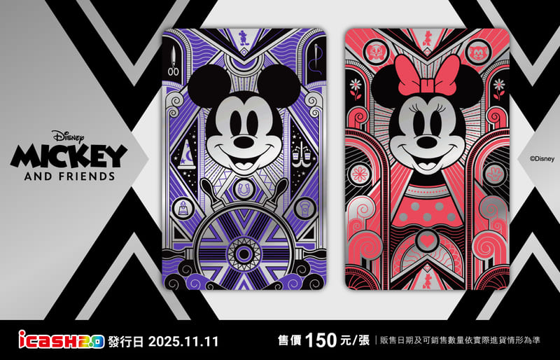 迎接年末,愛金卡公司推出四款全新 icash2.0,包括「2025愛·Sharing icash2.0」、迪士尼「奇幻紫米奇 icash2.0」「夢幻粉米妮 icash2.0」,以及「艋舺青山王祭170週年 icash2.0」。本次設計融合 威尼斯、迪士尼、艋舺信仰文化等不同風格,呈現多彩視覺體驗,兼具收藏與日常使用需求。