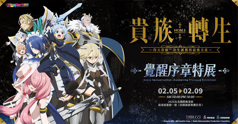 以台灣原創精神為核心、結合中日團隊實力打造的全新奇幻動畫《貴族轉生~得天眷顧 一出生就獲得最強力量~》,自 2026 年 1 月開播以來話題不斷!作品不僅以磅礡世界觀與高品質製作吸引粉絲關注,也象徵台灣動畫跨入國際市場的重要一步。「2026 台北國際動漫節」動畫特別開設專屬主題特展,還有聲優親遞見面會,展現台灣創作者的創作的無限可能!