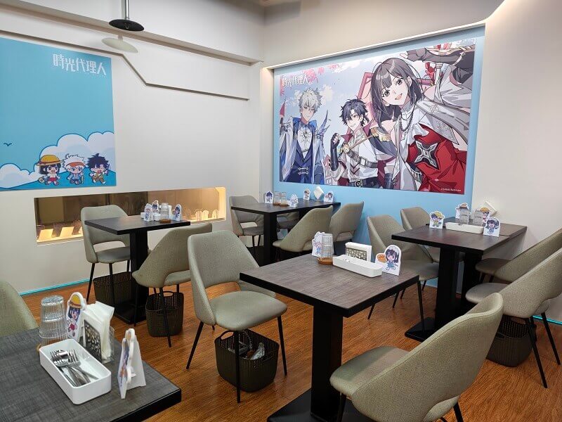 本次聯動以《時光代理人》四週年音樂企劃「M.O.D」為主題,結合六位人氣角色形象打造專屬特色餐飲,例如呼應陸光白髮與冷靜理性氣質的「雪白蛋糕」、展現 Vein 唐人商會背景與鮮明個性的中華風料理「麻婆豆腐飯」,喬苓喜愛的奶茶也融合髮色加入「黑芝麻奶霜」等等,讓粉絲在品嚐美味餐飲的同時,也能感受角色魅力。