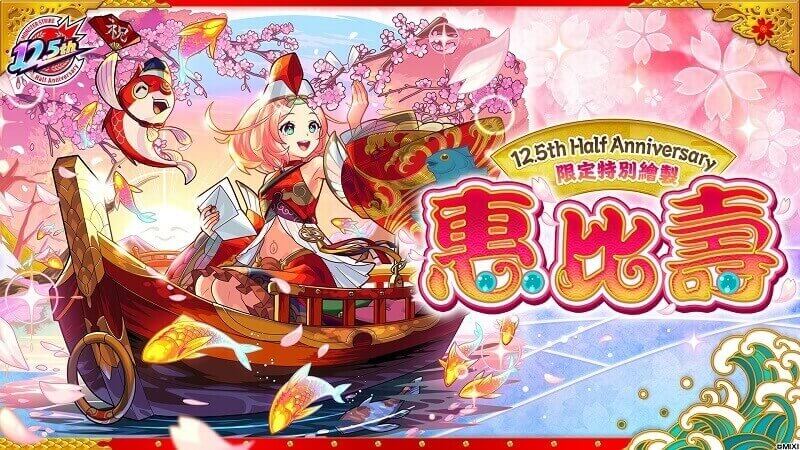 為慶祝12.5th Half Anniversary,「惠比壽」限定特別繪製造型「心隨春陽雀躍的笑福神 惠比壽」登場!春日的櫻花樹下,滿面笑容的「惠比壽」一定能捎來一份溫暖人心的好運。以多人遊玩突破任意冒險5次就可將「釣起笑容的笑福神 惠比壽」解放為「心隨春陽雀躍的笑福神 惠比壽」,各位彈珠好手們記得挑戰喔!