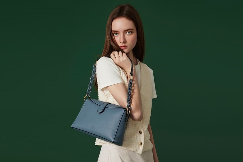 Montagut_春夏女包_霧灰藍鏈帶包( 圖/夢特嬌 提供 )