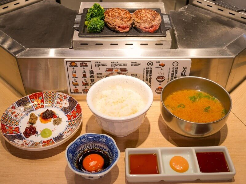 延續品牌「現絞現煎」的核心精神,「肉肉大米」堅持每日新鮮現絞、現煎上桌,為提供消費者呈現最佳風味的日式漢堡排套餐,整體製程皆於店內完成。提供2至3顆不同份量選擇,價格落在380元至530元之間,兼顧飽足感與日常消費需求 。每份套餐皆搭配現煮白飯、味噌湯、生雞蛋,並提供白飯、湯品與花椰菜免費續加,強化整體用餐的滿足感與彈性。其中,白飯選用來自日本北海道的「七星米」,堅持每日店內現場精米,並搭配超軟水烹煮,帶出米飯自然甜味與柔韌口感,成為整體餐點的重要基底。除了主餐漢堡排之外,桌面更提供8種調味料打造高度自由的用餐體驗,包括蒜香辣椒醬、燒肉醬、洋蔥醬、奧羅拉醬、日式芥末鹽麴、胡椒鹽、沙茶醬與黃芥末醬,不同組合可堆疊出截然不同的風味層次。從清爽系到重口味,每一次搭配都像重新定義一道料理,也讓單一品項延伸出多種吃法。在「肉肉大米」,調味不只是配角,而是一場可以被自由操作的味覺實驗,讓日式漢堡排從單一料理,轉化為更具互動性與變化性的餐桌體驗。