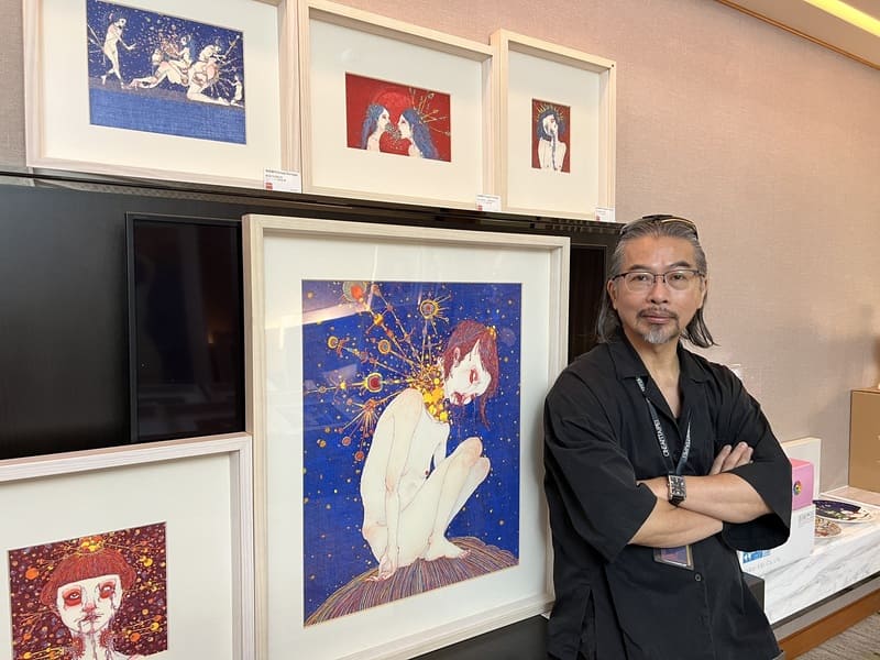 回溯約十年前,東家畫廊創辦人張國權於日本藝術活動 GEISAI(藝祭) 首度注意到寺田朋代的創作。當時仍是學生的她,作品靜靜陳列於地面,創作者本人則安靜地站在一旁,嬌小甜美的外表與作品畫面所呈現的張力形成強烈對比。GEISAI 是由日本藝術家 村上隆 發起的新銳藝術交流平台,向來以挖掘未來創作者聞名,而寺田朋代正是在這樣的場域中,被正式看見。