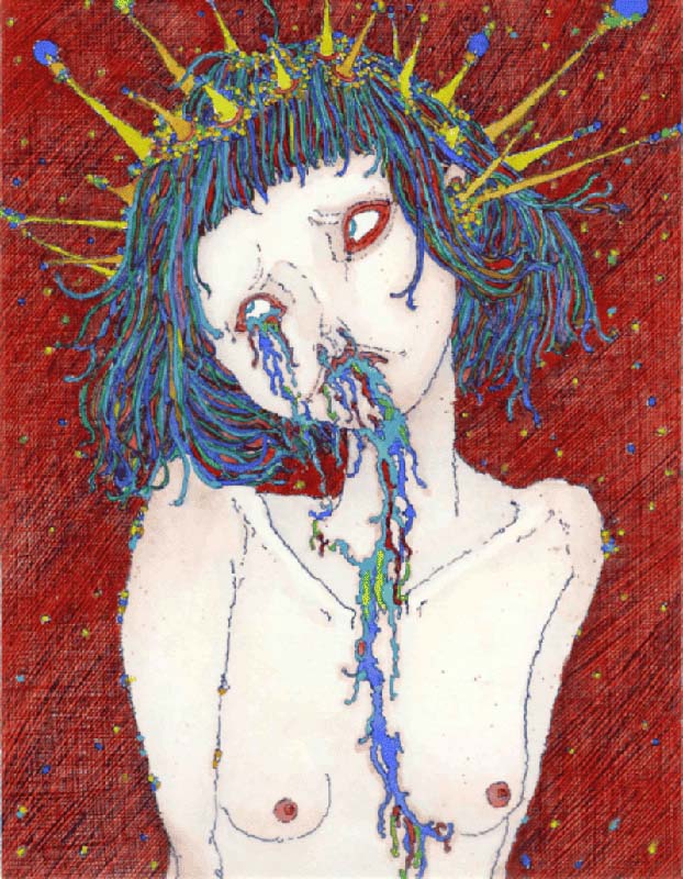 她的畫面構圖細膩、針筆線條精準,色彩層次內斂卻充滿情緒能量。畫作所傳達的並非感官刺激,而是一種對女性生命經驗的深層凝視——那些難以言說、長期被壓抑的情緒狀態,透過畫面被溫柔卻堅定地留下。