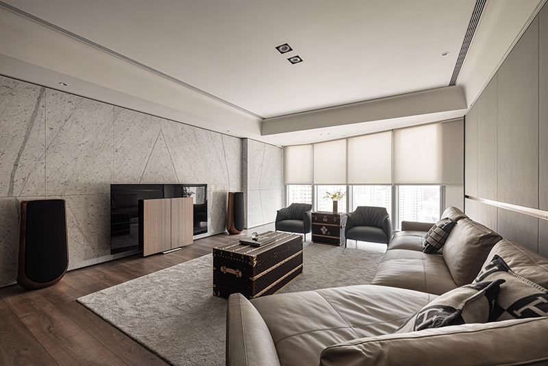 坐落於新北市中和區的一處青年住宅,重新打造出有別以往形象,以星級飯店的磅礡氣勢與細膩質感呈現。設計師模擬用戶在各機能空間中可能所需的情境,美感與實用機能不打折。