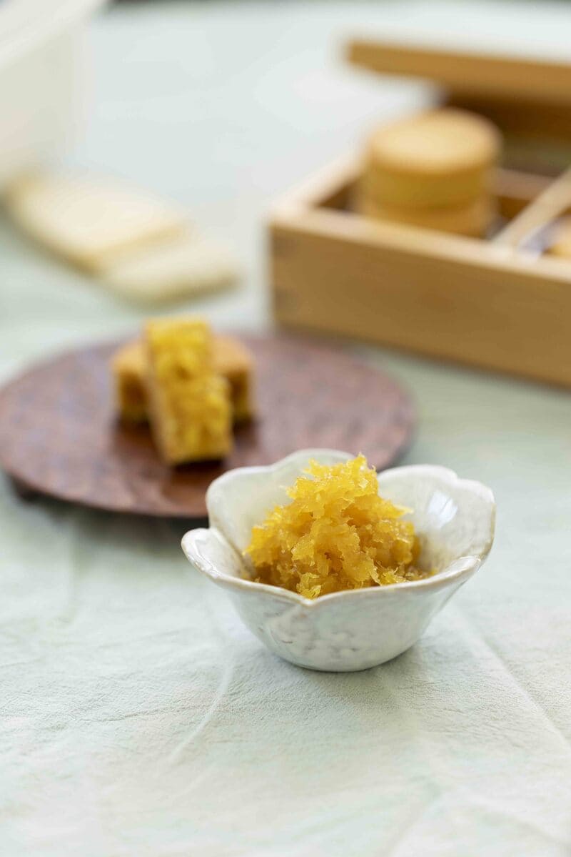 在製作工法上,維格餅家透過調整熬煮條件與製程管理,保留鳳梨餡較高的含水狀態,使口感更貼近鮮果質地,同時維持纖維細緻度與色澤穩定。外層餅皮則延續臺灣鳳梨酥常見的酥鬆口感,內外搭配呈現溫和、不刺激的整體風味結構。配方設計上,全程未添加人工香精、人工色素及防腐劑,相關製作流程皆依食品安全規範執行,反映品牌對原料選擇與製作細節的長期投入。