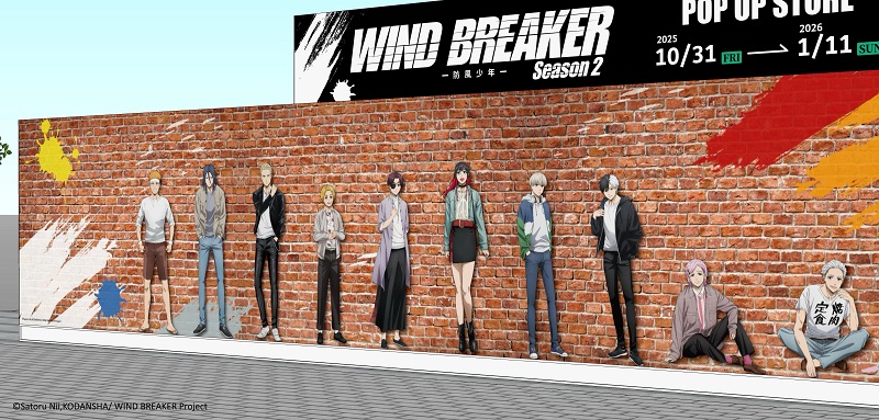 在快閃店遠處首先迎來的是「防風少年主視覺」以磅礴氣勢拉開序幕,將動畫第二季的熱血畫面完整呈現,旁邊就是「防風迎接門」,有著櫻遙、梅宮一及蘇枋隼飛等五大人氣角色齊聚門口,彷彿在迎接隊友一同出征,再往旁邊走去,馬上看到「等身主角牆」,別猶豫立馬坐到中間和櫻遙、杉下京太郎和梶蓮等十位主角一起入鏡留念。隨後走進以紅磚牆為背景的「街頭區」,角色們換上便服,少了戰鬥的凌厲,像在校外與他們不期而遇,好難不心動啊!而在「城鎮外看板區」前重現,象徵著守護城鎮的重要場景,快來喊出那句「傷害他人的、破壞物品的人,不管有多少人,『防風鈴』都會將他們肅清!」。最後來到「海報牆」,海報中完整重現了梶蓮,椿野佑等人並肩而立,無畏挑戰帶出角色的氣勢與羈絆,讓粉絲彷彿現身作品中最震撼時刻的感動,一同迎戰未來。六大打卡點一次到位,從熱血台詞到重現動漫中的經典場景,一次收齊,全部都要拍好拍滿啊!